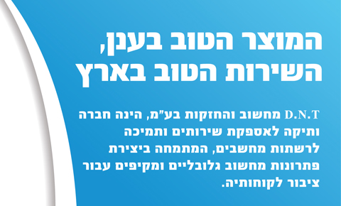 חברת ד.נ.ת מחשוב והחזקות בע"מ, הינה חברה וותיקה ובעלת נסיון רב בתחומה, מרחיבה בימים אלו את מעגל לקוחותיה הנהנים משירות איכותי ויחס אישי בכל הנוגע למתן שירות ותמיכה לרשתות המחשבים בארגון.